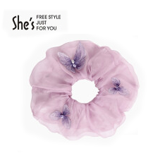 双玲草原创欧根纱刺绣蝴蝶马尾发绳